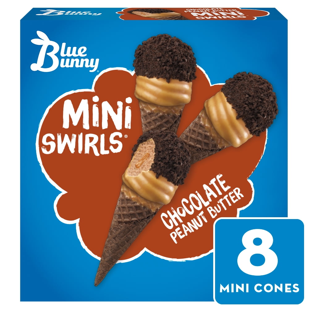 Blue Bunny Mini Swirls Chocolate Peanut Butter Cone 8pk Walmart Com